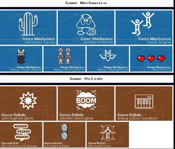 Making retro arcade games is a well explored way of learning how to code. It’s engaging, especially for people that like to play games, but just about everyone has some knowledge that will help you. This project allows you to choose your own game design features and apply them to your starting platform game to make it your own.